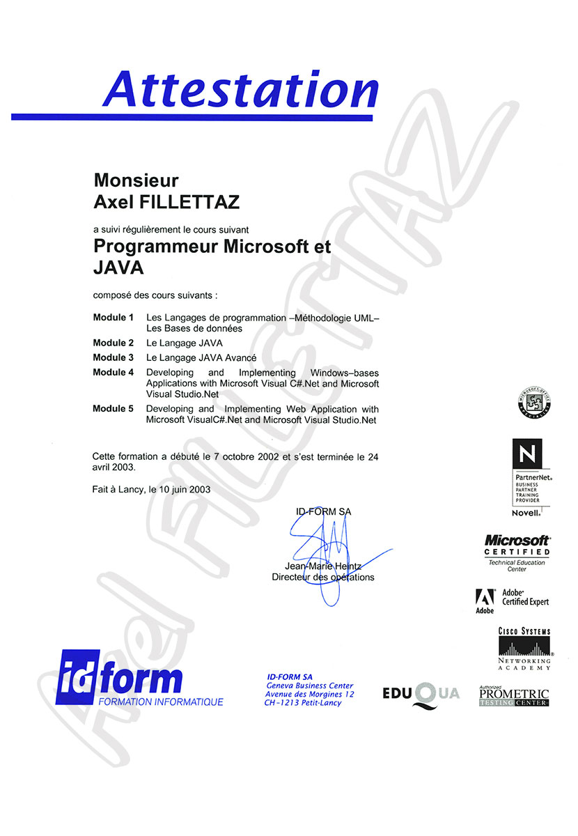 Certification WebProgrammer